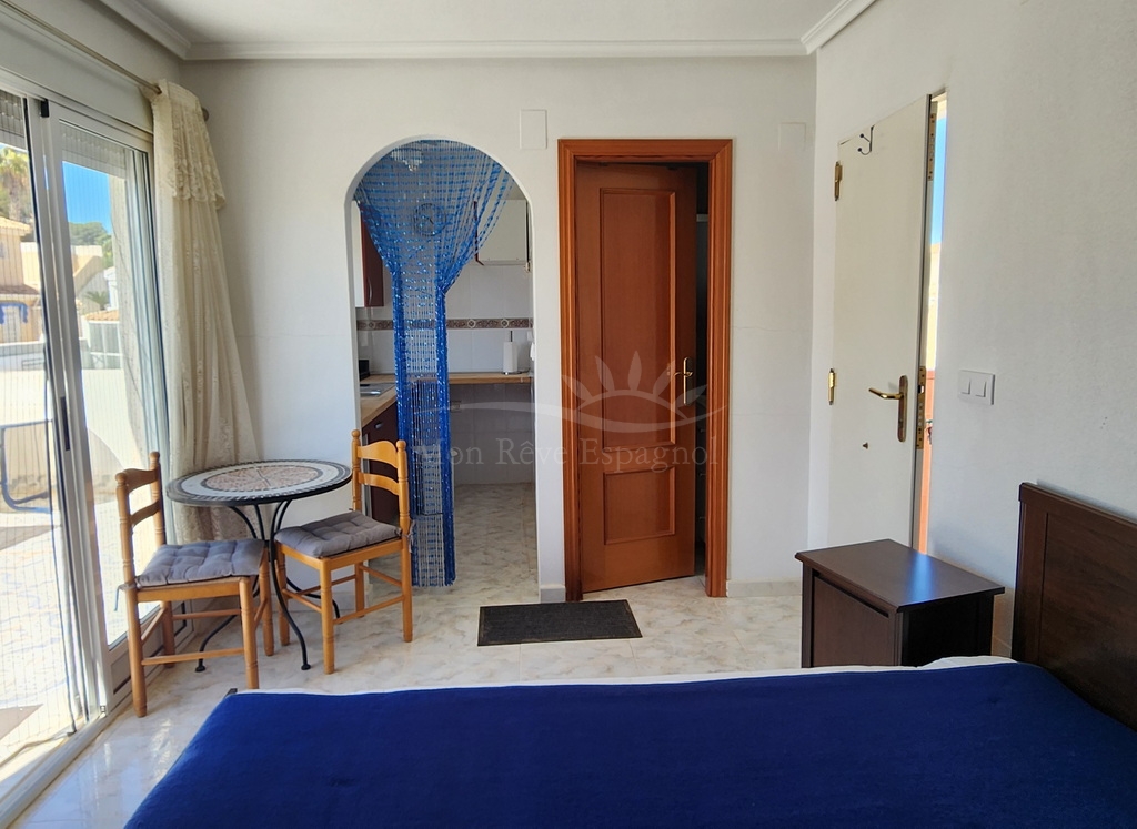 - Habitación de invitados con cocina pequeña, cuarto de baño y terraza privada.