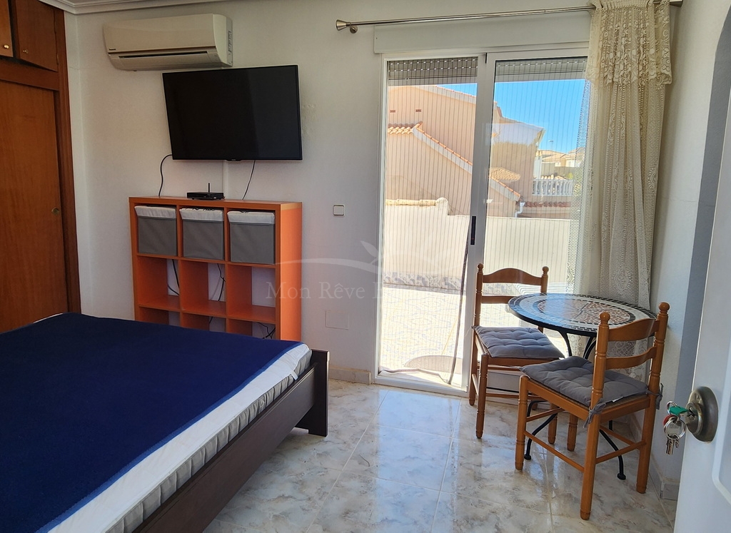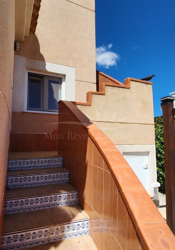 En el exterior, una escalera independiente conduce a un práctico apartamento de invitados, que dispone de terraza privada, un amplio dormitorio, baño con ducha y una pequeña cocina, ideal para visitas o alquiler.