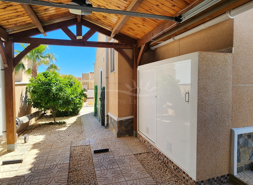 La propiedad está equipada con aire acondicionado, ventiladores de techo, toldos y cuenta con una piscina privada de agua salada, cocina exterior, lavadero independiente y cobertizo. Se vende parcialmente amueblada.
