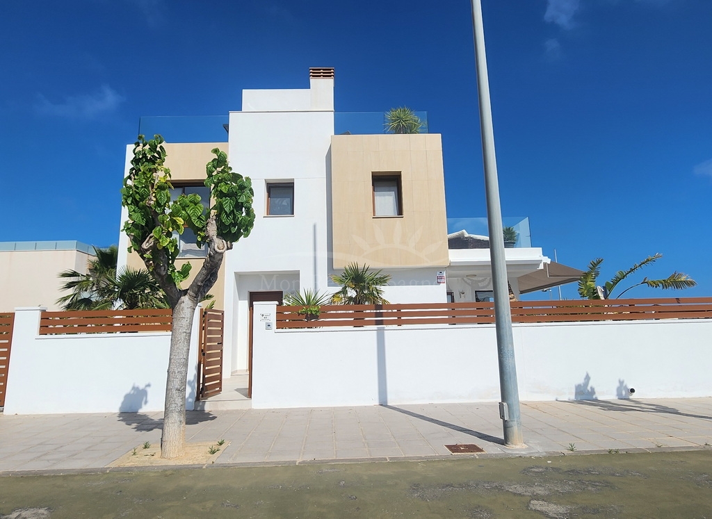 Te presentamos esta elegante villa en Torre de la Horadada, diseñada para disfrutar al máximo del confort, la amplitud y la vida al aire libre. Una vivienda que combina funcionalidad y estilo, con espacios luminosos y zonas exteriores pensadas para aprovechar el clima mediterráneo durante todo el año.