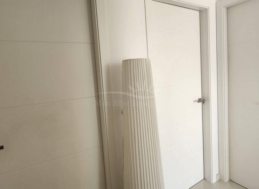 Al acceder a la vivienda, un práctico recibidor distribuye los espacios de forma cómoda. A la derecha, un armario empotrado ideal para abrigos y calzado; a la izquierda, un baño completo y un dormitorio, perfecto como habitación de invitados o despacho.